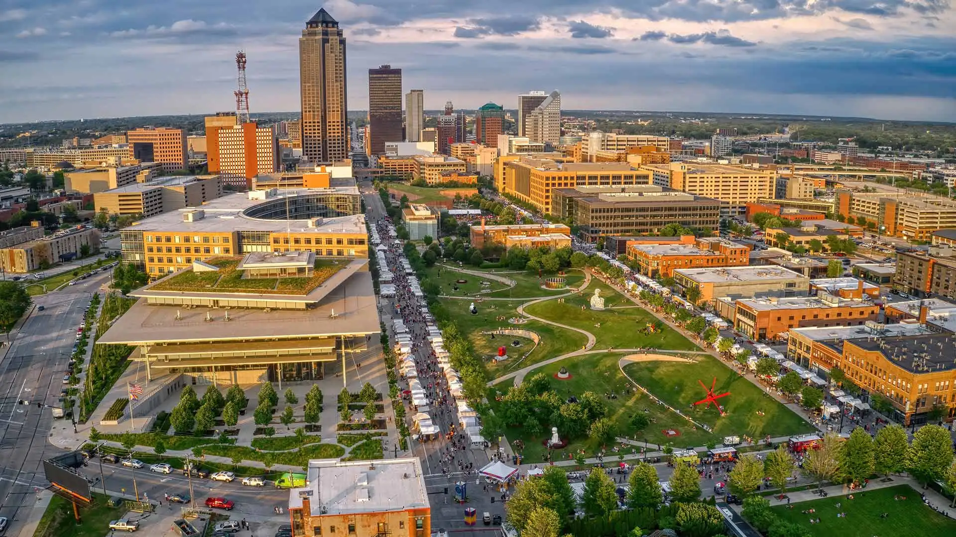 The capital of the great state of Iowa is none other than Des Moines, a vibrant city with a population of just over 212,000. Not only is Des Moines a great place to live, but it also boasts a strong job economy. There's something to do for everyone here, and it can prove challenging to get bored in a city as rich as this one. The gold-domed Iowa State Capitol building is a famous historical landmark and a popular tourist destination. Meanwhile, you can also walk through the Greater Des Moines Botanical Garden or Pappajohn Sculpture Park to view beautiful plants or sculptures. There are also several nature parks to enjoy, like Gray's Lake Park, and art fanatics will find that the Des Moines Art Center is a must-see.